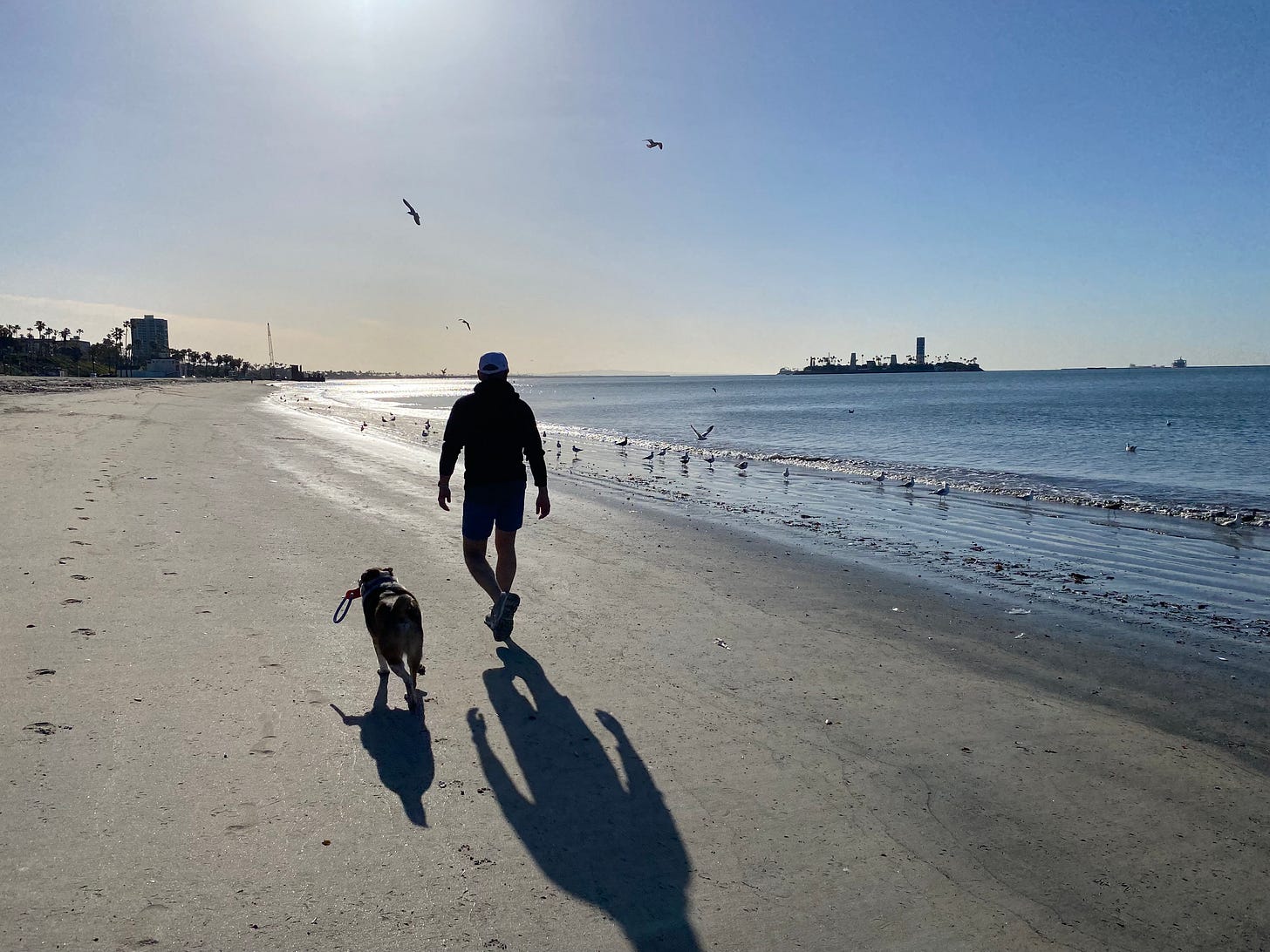 We must have appeared an interesting sight to the dog walkers and others making their Saturday morning rounds on the thoroughfare that is Ocean Boulevard: she tugging the beast, me chasing behind the beast with the sliced honey ham container, me reaching around and under the beast, while the beast himself kept looking back at me with the “what the fuck are you doing back there” expression.